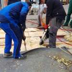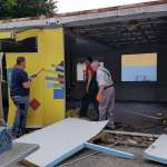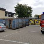 25.08.2018 Die Feuerwehr Grimmelshofen baut einen der zwei alten Schulcontainer bei der Realschule ab.